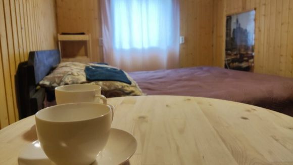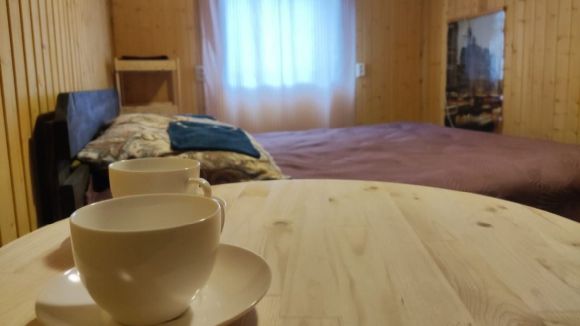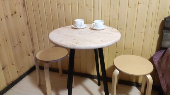 В номере есть:санузел, обогреватель, кофейных столик на двоих,